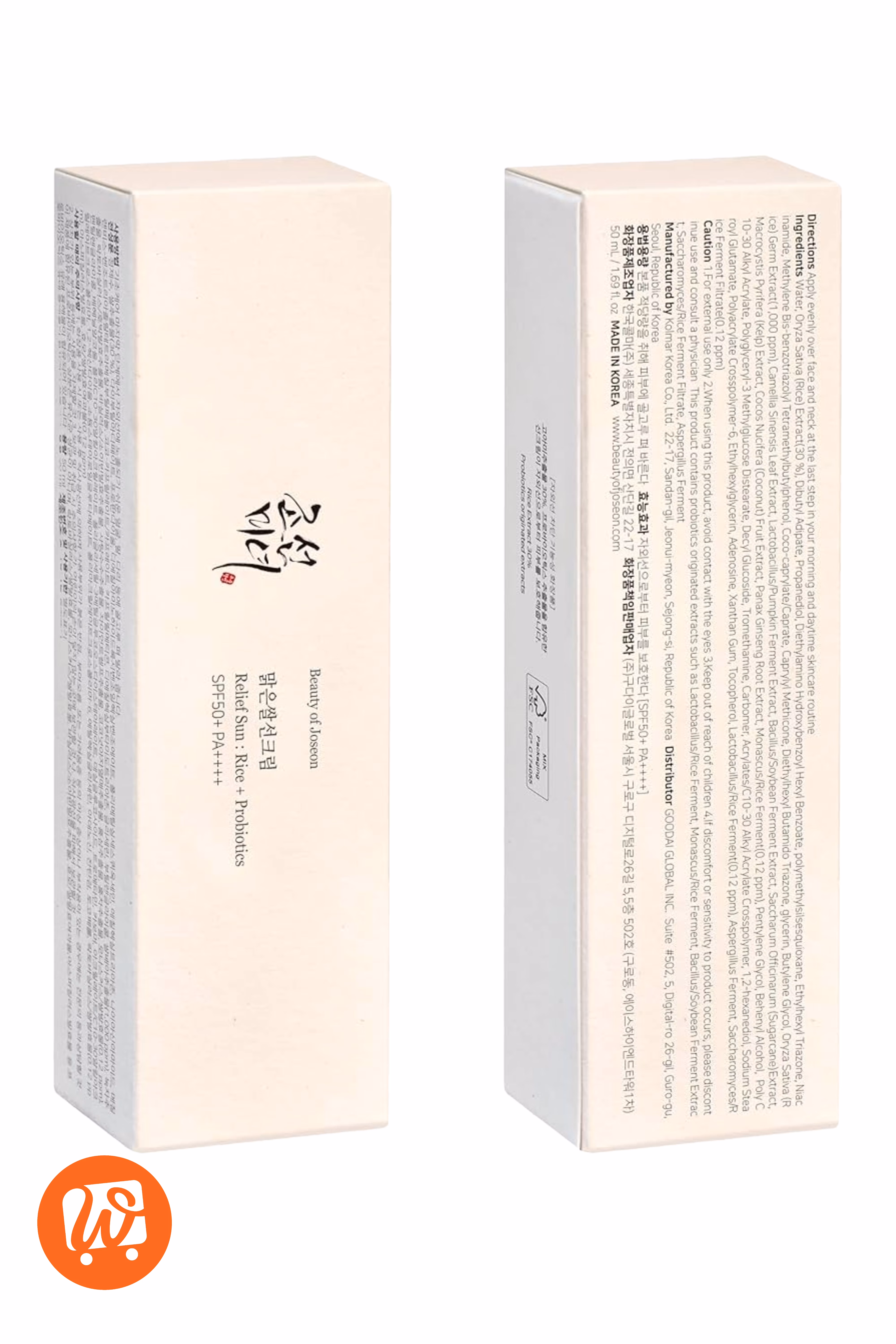 BEAUTY OF JOSEON Relief Sun Rice+ Probiotics SPF50+ Pa+++ 50ml