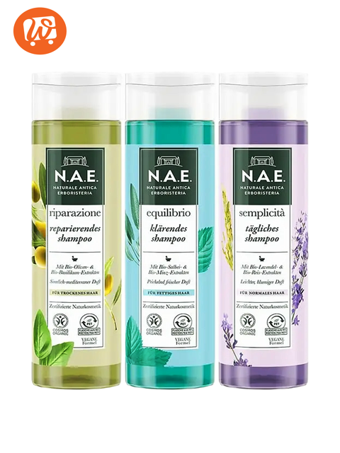 N.A.E. (Naturale Antica Erboristeria) propose une gamme variée de shampooings adaptés à différents types de cheveux, tous conditionnés en flacons de 250 ml. Voici quelques-uns de leurs produits phares :