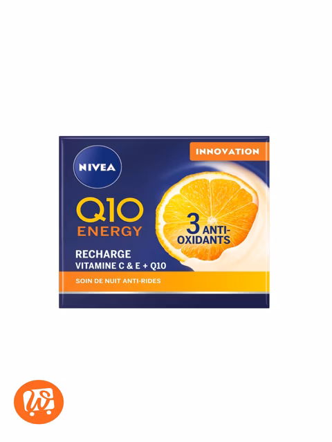 Le NIVEA Q10 Energy Recharge + Vitamine C & E Soin de Nuit est une crème anti-rides revitalisante conçue pour recharger la peau en énergie pendant le sommeil, réduire les signes de fatigue et redonner éclat aux teints ternes dès le réveil. Il agit comme un véritable soin réparateur nocturne, idéal pour les peaux stressées et fatiguées.